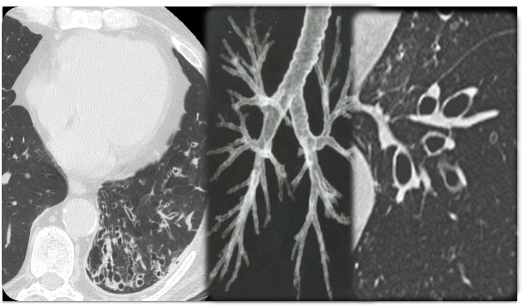 Pattern Cistico Il pattern cistico è caratterizzato dalla presenza di cavità rotondeggianti o ovali, con pareti ben o poco definite, all’interno del parenchima polmonare. Bronchiectasie